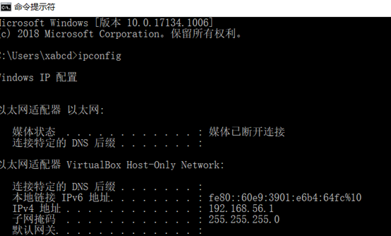 3.在cmd中找到自己的网卡地址(不能和当前电脑以太网段IPV4冲突):
